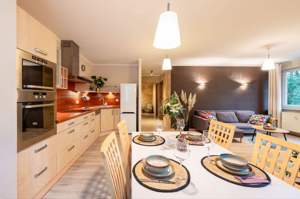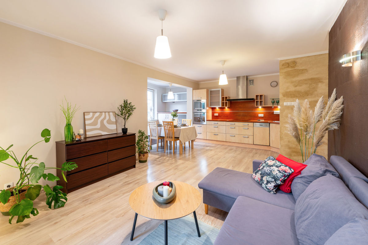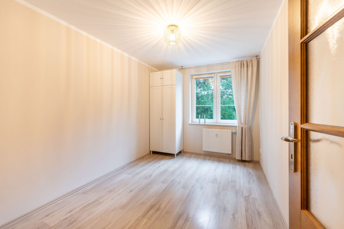 Lokal częściowo umeblowany: kuchnia na wymiar ze sprzętem agd, stół z krzesłami, w salonie rozkładany narożnik, w przedpokoju oraz sypialniach pojemne szafy. Budynek zarządzany przez wspólnotę. Mieszkanie w bardzo dobrym stanie technicznym z zadbaną klatką schodową oraz terenem wokół nieruchomości.