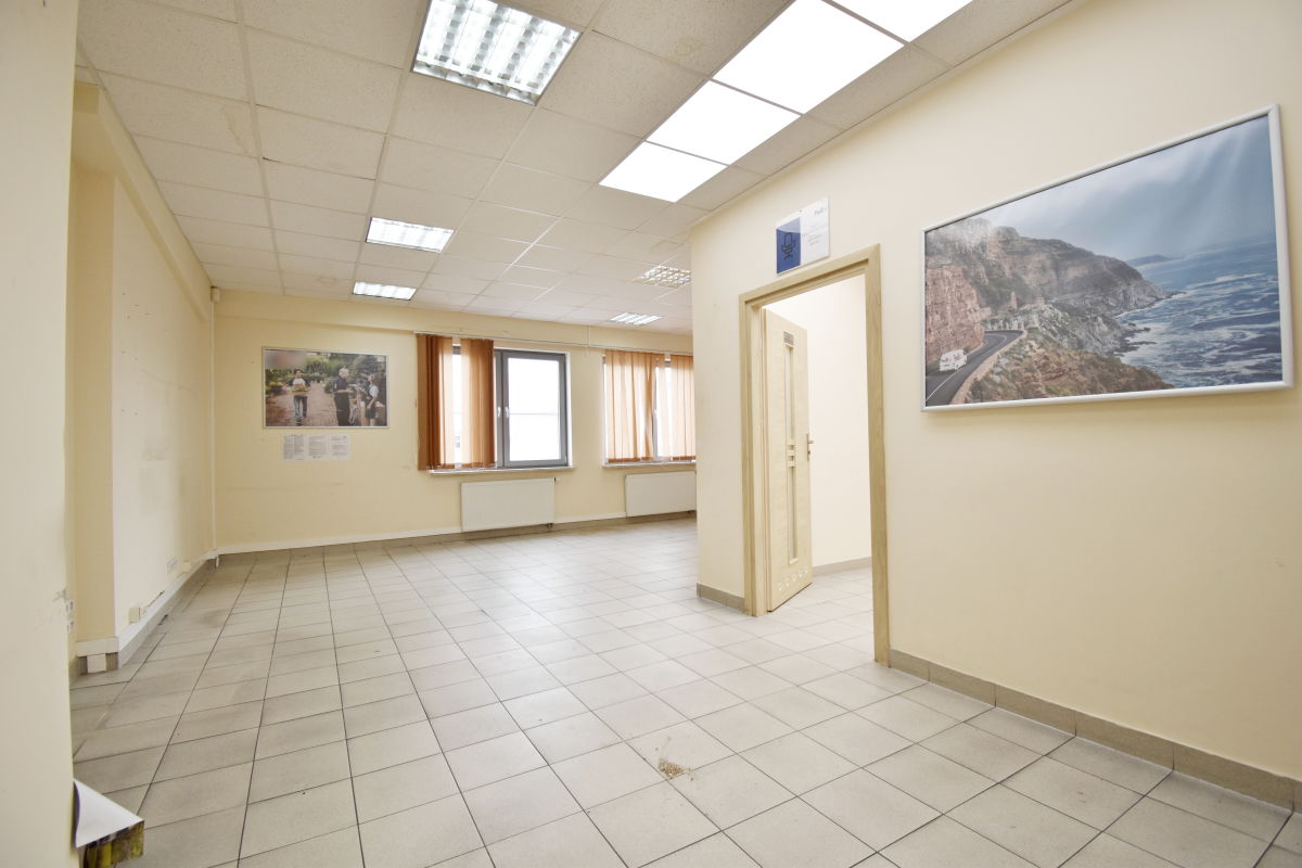 Lokal stanowią dwa pokoje biurowe o powierzchniach 12 m2 oraz 40,6 m2. W częściach wspólnych znajduje się toaleta oraz aneks kuchenny.