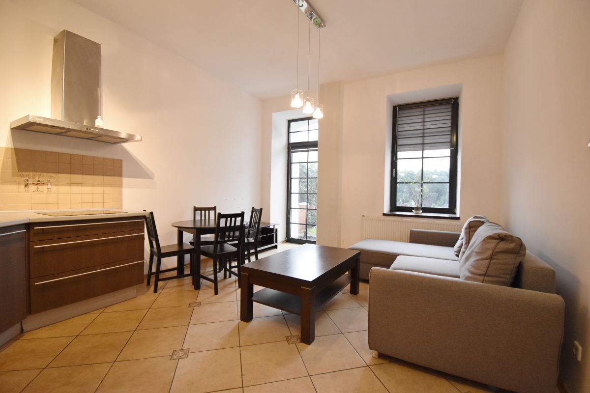 Oferujemy do wynajmu mieszkanie 2-pokojowe o powierzchni ok. 44 m2, położone na parterze pofabrycznego budynku - loftu, w niedalekiej odległości od centrum miasta.
