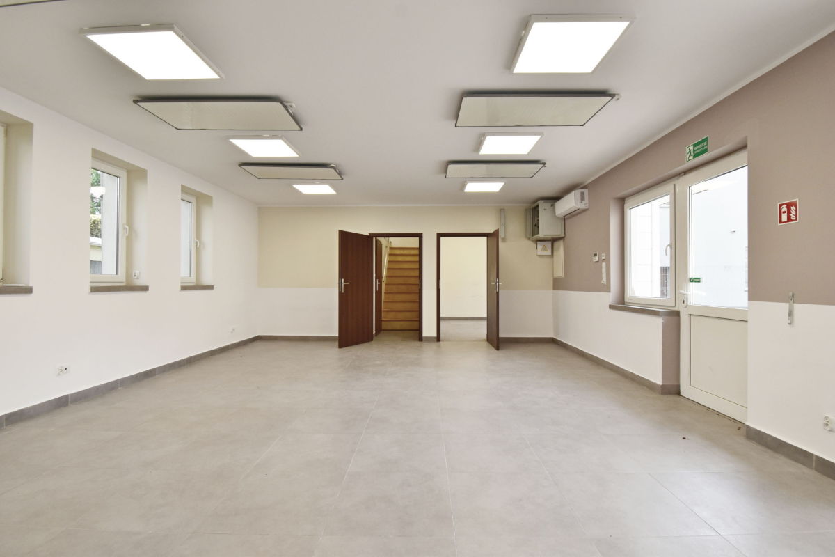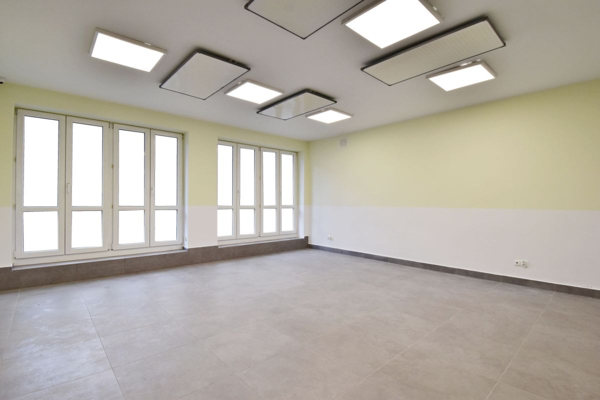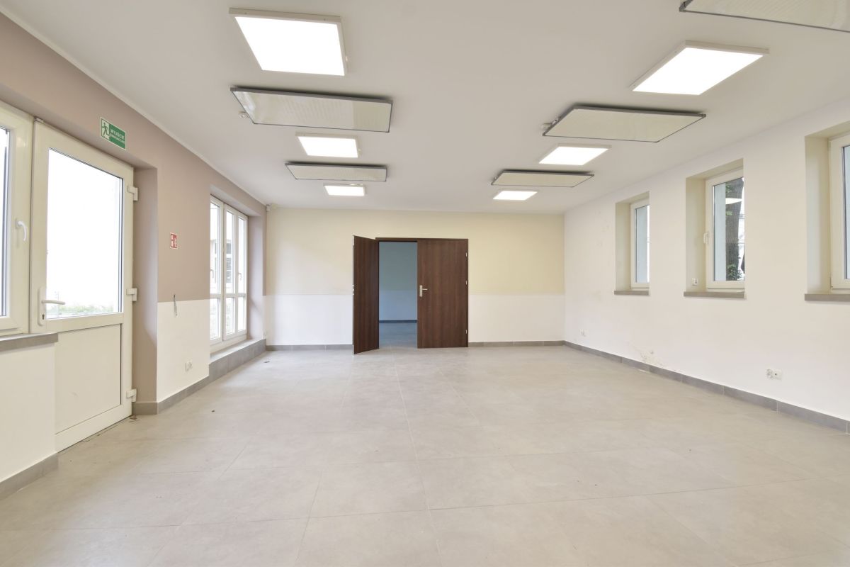 Lokal składa się z 3 sal, aneksu kuchennego, 2 toalet, pomieszczenia gospodarczego oraz pomieszczenia na antresoli. Lokal bardzo dobrze doświetlony. Teren wokół budynku ogrodzony. W pomieszczeniach klimatyzacja. Rozprowadzona instalacja alarmowa, światłowód. Wysokość pomieszczeń od 2,65 - 3 m.