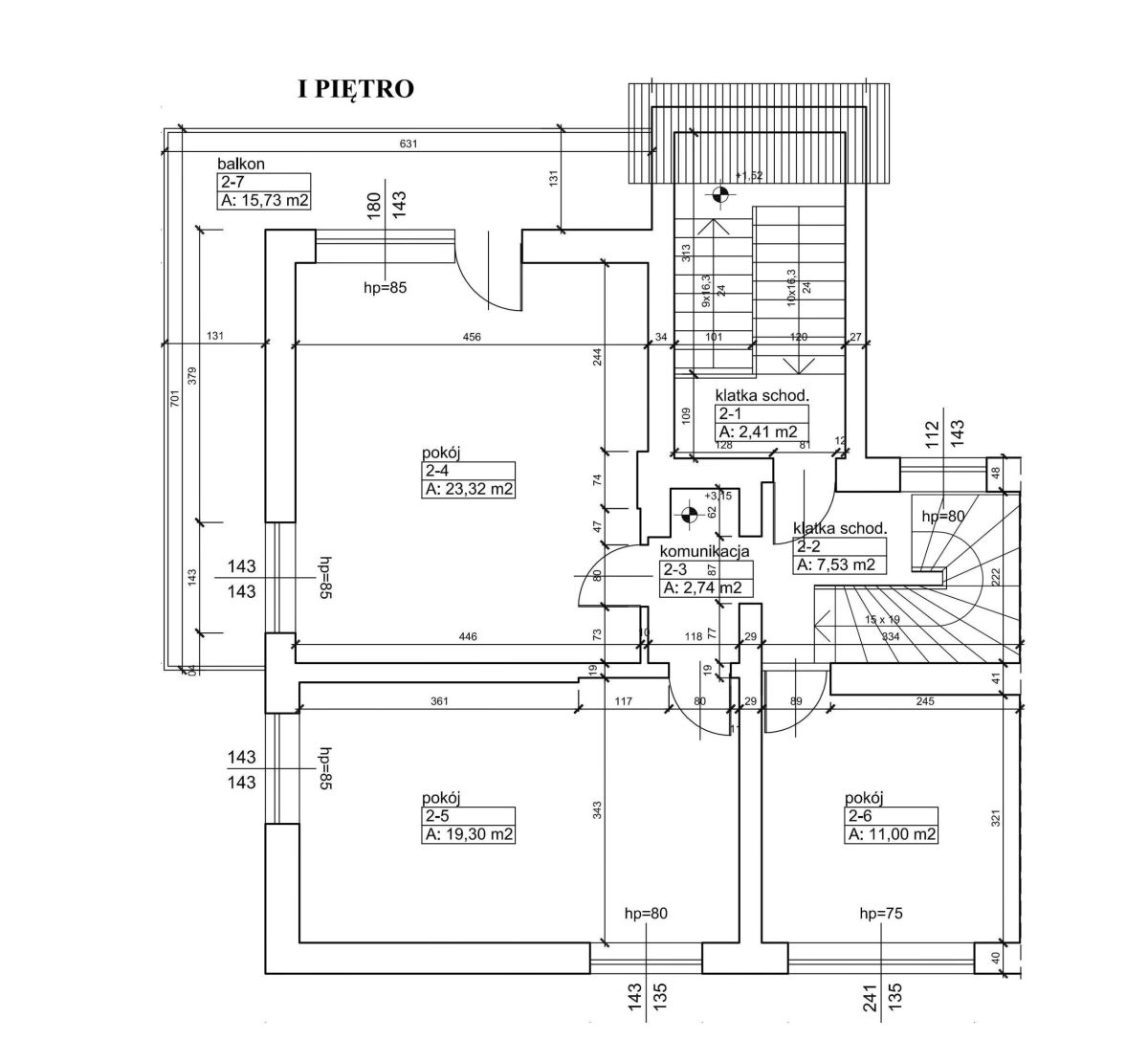 - I i II piętro 66,30 m2 i 57,64 m2 - biura / gabinety.